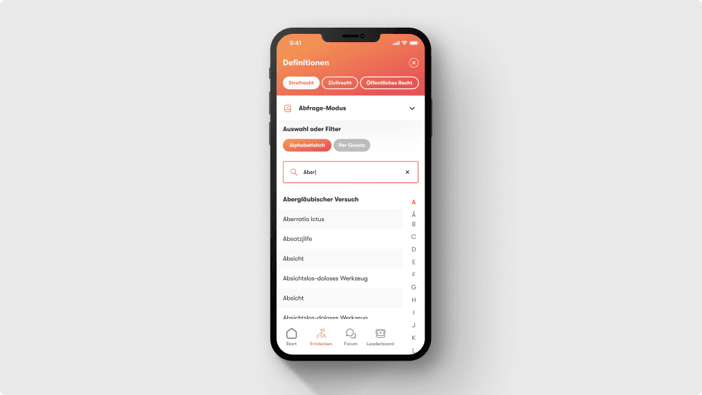© Jurafuchs | In der Jurafuchs-App findest Du etwa 800 Definitionen.