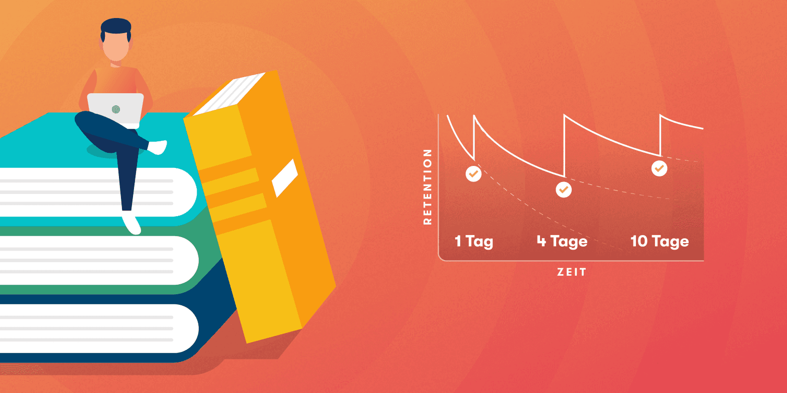 Die Lösung? Spaced Repetition! Dabei geht es darum, den Stoff immer kurz vorm Vergessen zu wiederholen – nicht früher und nicht später. So bleibt er im Gedächtnis und die Intervalle zwischen den Wiederholungen können immer größer werden. Das spart Zeit beim Lernen.