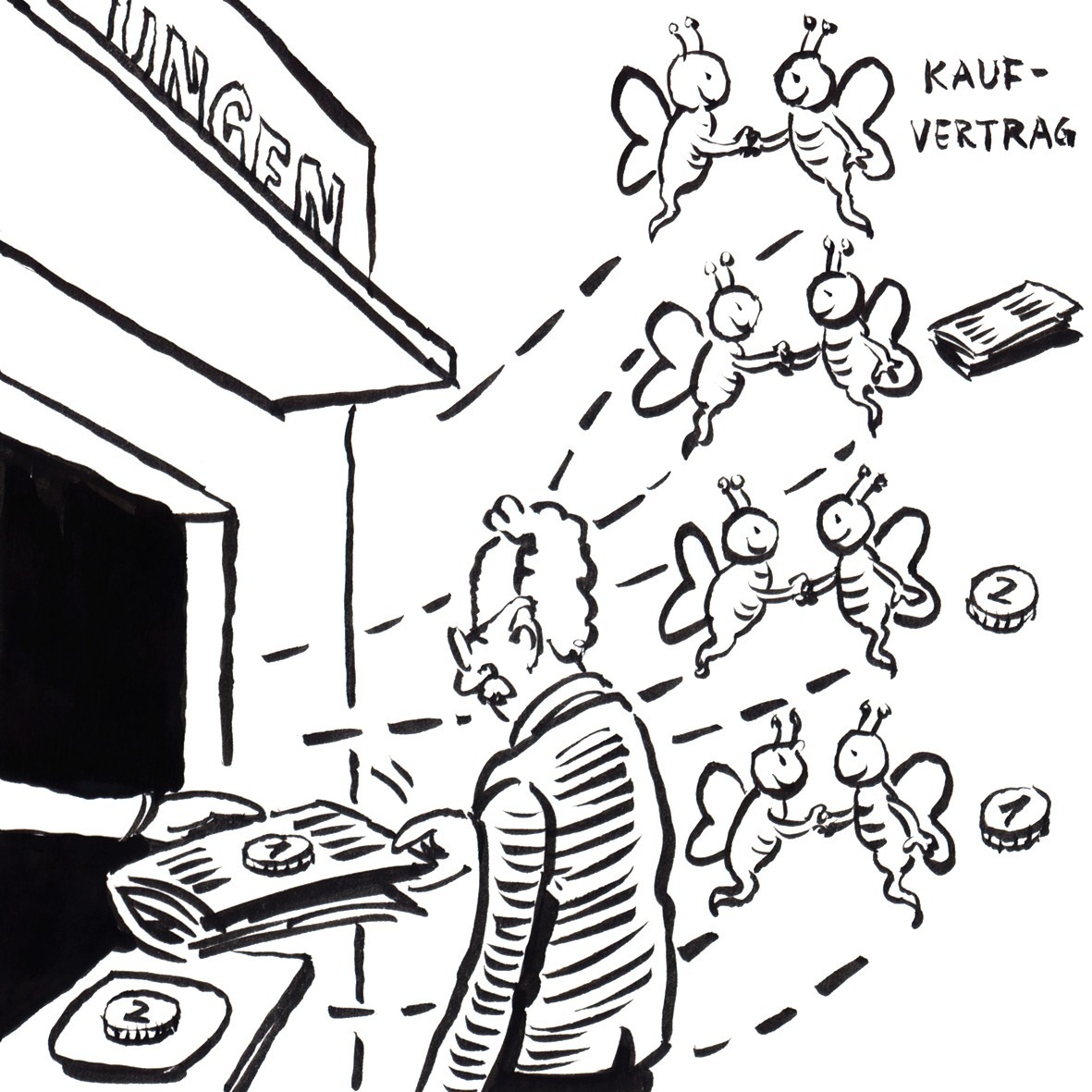 Durch diese Beschränkung der Lernerfahrung auf das Wort bleiben allerdings die visuellen Lernfähigkeiten des Gehirns ungenutzt, die insbesondere in der assoziativen Verknüpfung von Bild und Sachproblem bzw. Lösung liegen und gerade bei mehrmaligem Lernen zu gesteigerten Lernerfolgen führen.23 Ganz unbenommen ist überdies, dass Visualisierungen die Zugänglichkeit komplexer juristischer Lerninhalte steigern. Doch ein Wandel ist erkennbar: In einer zunehmenden Anzahl juristischer Ausbildungswerke werden Formen der Visualisierung zur Verdeutlichung von Rechtsproblem und -lösung dargeboten.24 Bei Jurafuchs gehören Visualisierungen zum Kernbestand des Lernangebots: Jeder Fall ist mit einer Illustration versehen, die den Sachverhalt verdeutlicht, den Zugang zum Rechtsproblem vereinfacht und den Lernspaß steigert. Teilweise dienen die Illustrationen dazu, abstrakte juristische Konzepte zu versinnbildlichen (z.B. Willenserklärungen oder Abstraktionsprinzip):