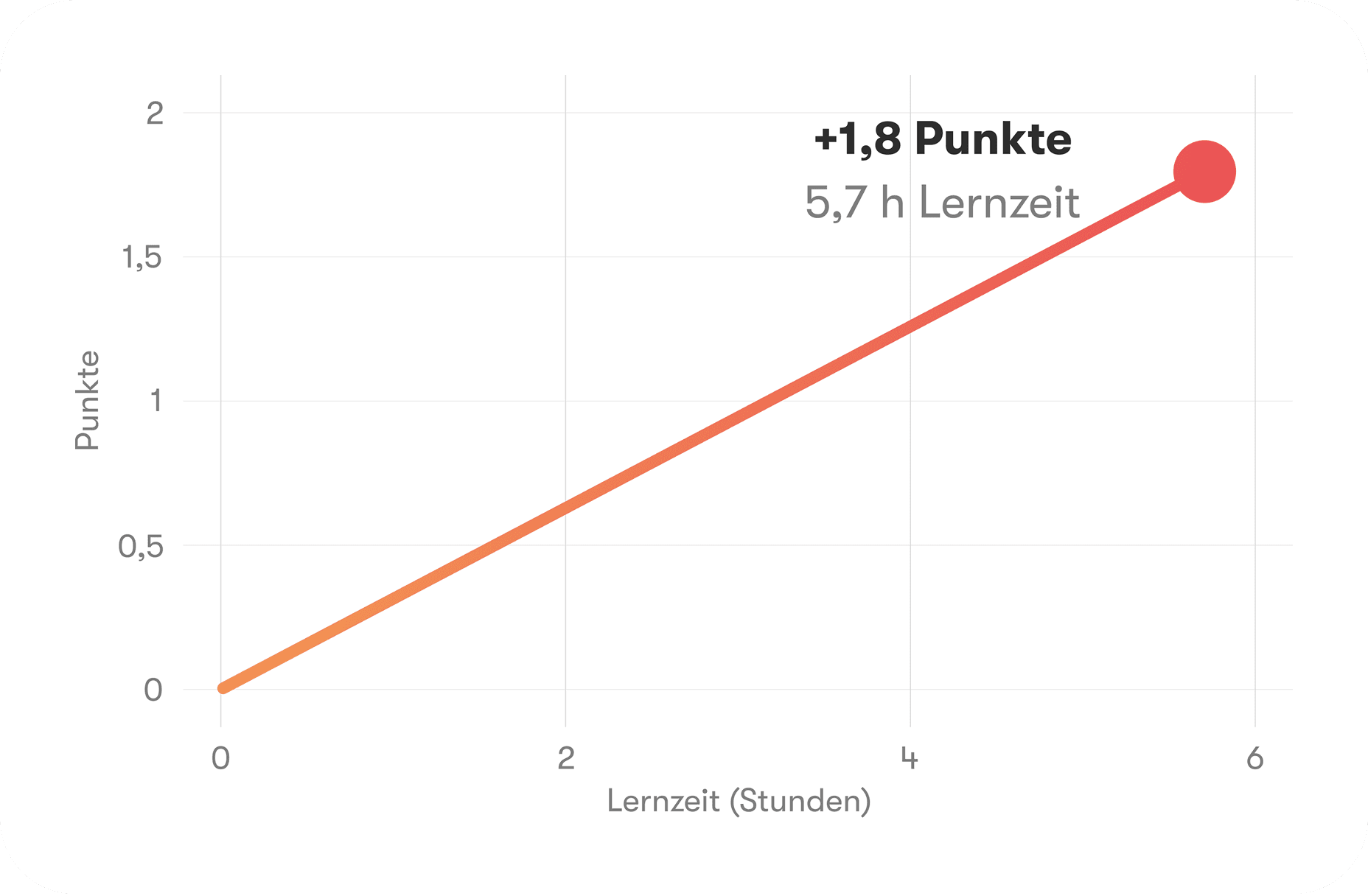 Eine unabhängige Studie von Prof. Dr. Andreas Glöckner zeigt: Studierende, die mit Jurafuchs lernen, schreiben bessere Klausuren. Schon nach durchschnittlich 5,7 Stunden Lernen innerhalb von 30 Tagen verbesserte sich die Klausurleistung um 1,8 Notenpunkte.