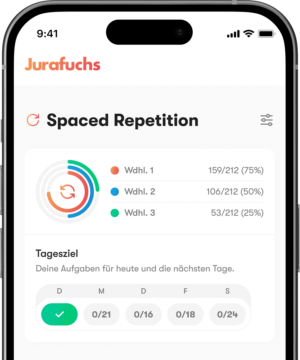 Du weißt immer, was du als Nächstes tun sollst. Ein personalisierter Lernplan, der Klausurencoach und Spaced Repetition helfen dir, den Stoff gezielt aufzubauen und langfristig zu behalten. So lernst du nicht planlos, sondern mit einem klaren System und gehst deutlich sicherer in deine Klausuren.